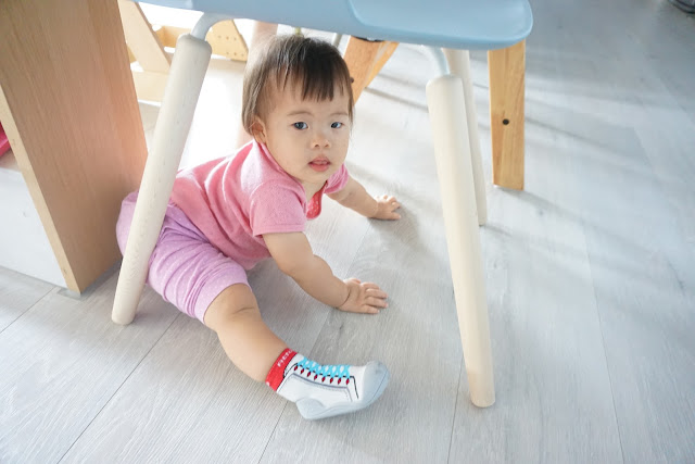 ➜ 襪型學步鞋我個人覺得很適合「會爬」和「走的穩」的寶寶,因為會爬的寶寶在爬行過程中很容易撞到腳趾頭、腳後跟,所以適合用襪型學步鞋保護 ; 而走的穩的寶寶,很適合一雙快速穿脫的襪鞋。