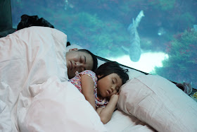 糖姐波妹被珊瑚王國入口處的水缸給吸引住了